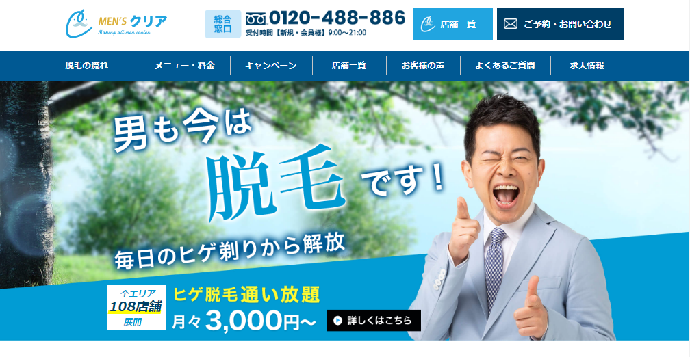 また、毛の濃さや脱毛方法などで費用は変わります。上記はメンズクリア3か月通い放題の場合の料金を目安として掲載しました。
