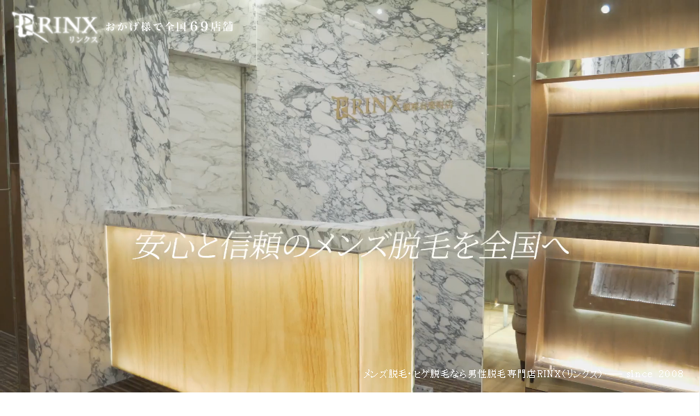 全国展開、61店舗で24万人の実績を持つ男性脱毛専門店のRINX(リンクス)です。
