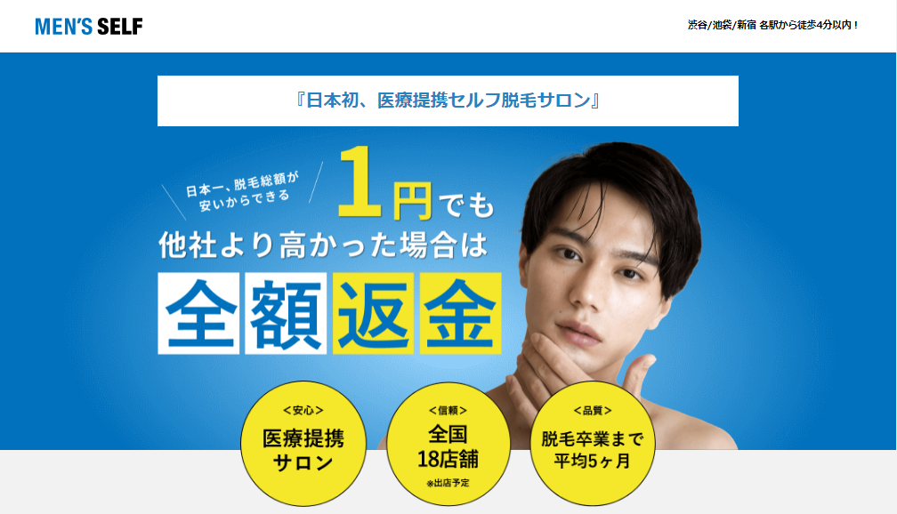 東京・池袋・新宿に店舗を持つセルフ脱毛サロンのメンズセルフです。